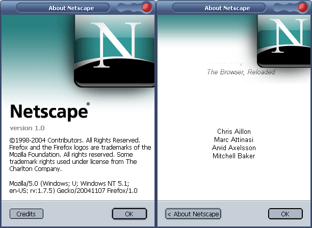 Mozilla/5.0 (Windows; U; Windows NT 5.1; en-US; rv:1.7.5) Gecko/20041107 Firefox/1.0 (Netscaped)
