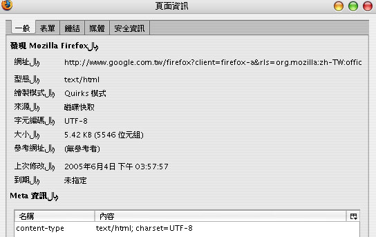 Mozilla/5.0 (Windows; U; Windows NT 5.1; zh-TW; rv:1.7.8) Gecko/20050511 Firefox/1.0.4
