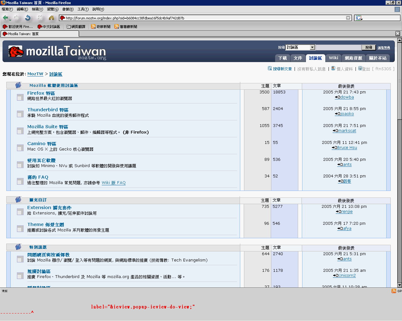 Mozilla/5.0 (Windows; U; Windows NT 5.1; zh-TW; rv:1.7.8) Gecko/20050601 Firefox/1.0.4