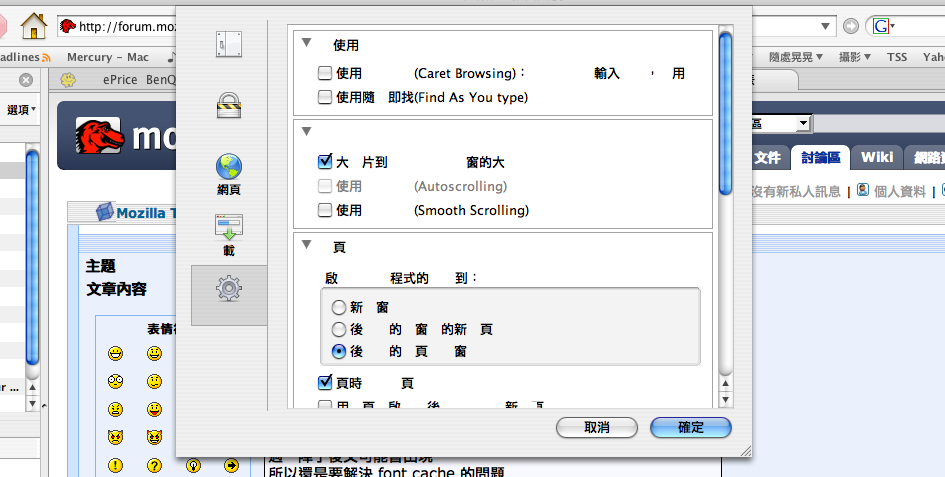 我的系統是firefox 1.0.4(中文版)MacOSX 10.4.1