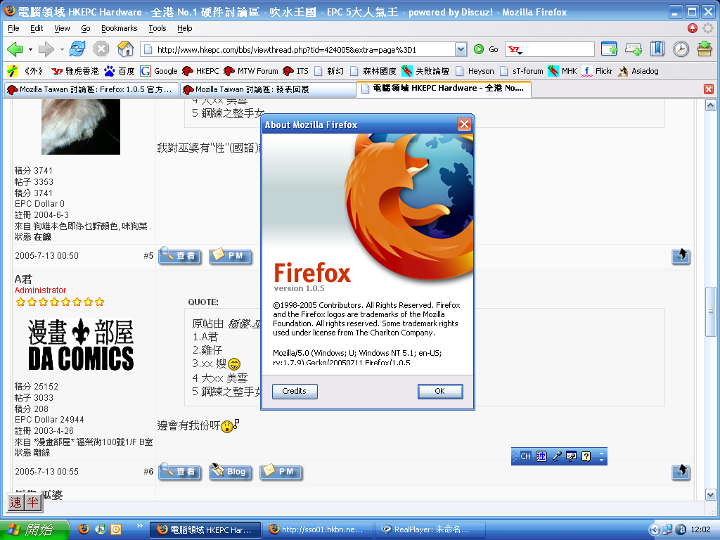 | 文章主題 : | Firefox 1.0.5 官方英文正式版發佈了 |