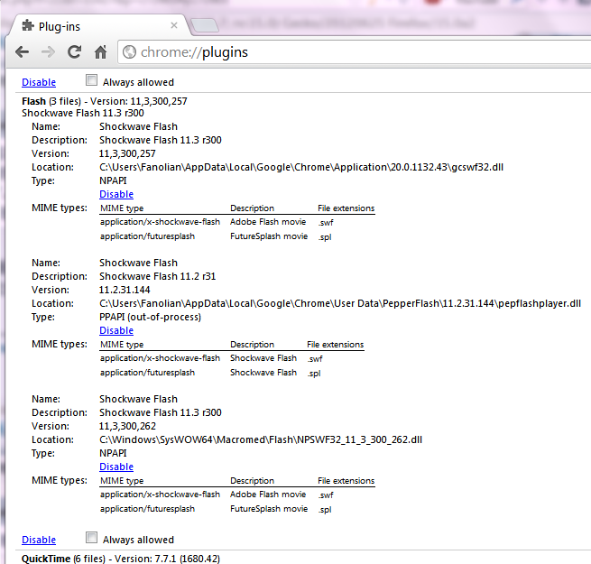 Firefox新的安裝版: 當PC已安裝且本身已置入Flash Player時, 會選兩者之中較新的版本. Firefox.exe 與 啟動的 plugin-container.exe 有時會因各自啟用的 Flash Player 版本不同而 "相沖".