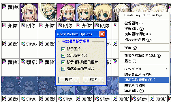 o Show Picture 1.8 版,右鍵選單加入六個選項:顯示圖片、顯示所有圖片、顯示選取範圍的圖片、放大圖片佔位符、顯示最大圖片、顯示每個框架最大圖片。