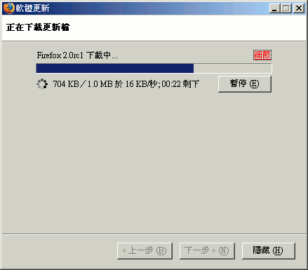 「704KB/1.0MB 於 16KB/秒 ; 00:22 剩下」是否改成「704KB/1.0MB 於 16KB/秒 ; 剩下 00:22」會比較好?