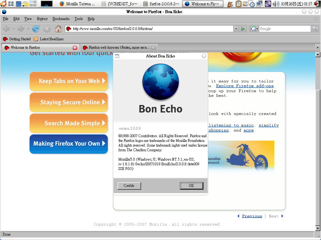 Mozilla/5.0 (Windows; U; Windows NT 5.1; zh-TW; rv:1.8.1.8) Gecko/20071008 Firefox/2.0.0.8