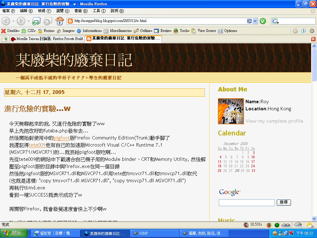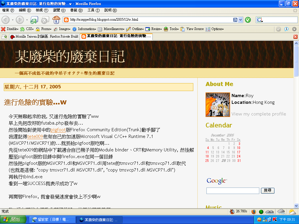 Mozilla/5.0 (Windows; U; Windows NT 5.1; zh-TW; rv:1.8) Gecko/20051208 Firefox/1.5 (pigfoot.改)