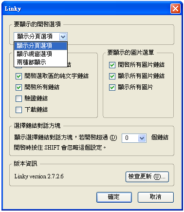 • 開啟對象:可選「所有鏈結」「所有純文字鏈結」「選取區的鏈結」「選取區的純文字鏈結」「圖片鏈結」「圖片」