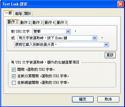 * 可自動偵測網頁上純文字的鏈結,用滑鼠雙擊時,或滑鼠雙擊搭配指定的按鍵組合,可將鏈結開啟到目前分頁、新分頁、或新視窗。