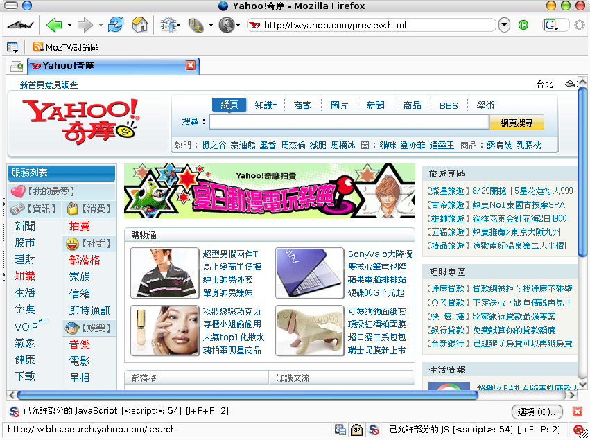 還有如果有用Linux下Firefox瀏覽過的人應該會發現上Yahoo!新首頁會卡卡的(至於Win下會不會我就不曉得了)