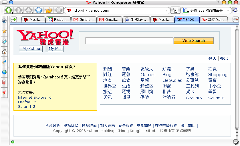 今天去Yahoo!的時候發現一個好消息—Yahoo!奇摩終於在Browser這方面解禁了!