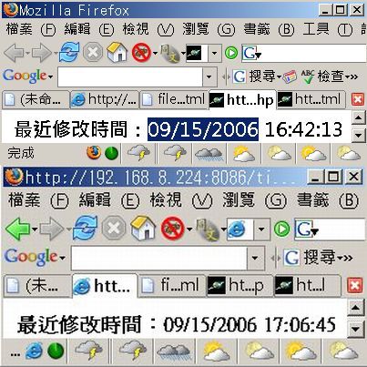 三、存成html就可以得到正確的檔案時間,但op9、Mozilla 1.7.12、Galeon 1.2.14及Konqueror 3.1-18秀的都是GMT時間,和Fx及IE的結果不同!