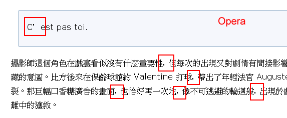 有沒有人知道為什麼,在 opera 中,中文全形的逗號會變成半形,而西文的右引號 (即使設定了語系) 會變成全形字體?