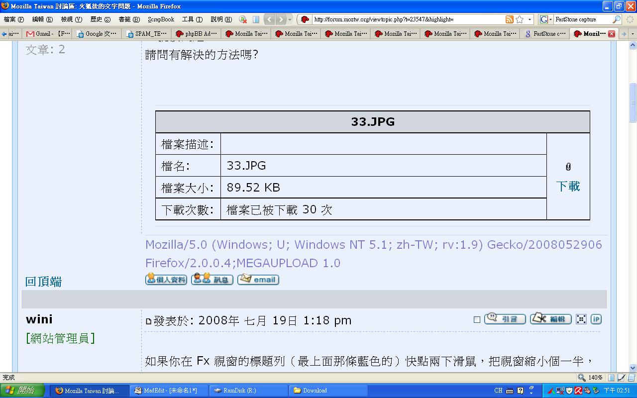 Mozilla/5.0 (Windows; U; Windows NT 5.1; zh-TW; rv:1.8.1.16) Gecko/20080702 Firefox/2.0.0.16