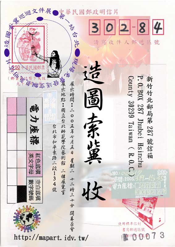 此計畫是一個非營利的藝術創作計畫,目的是透過台灣特有的「電力座標系統」將個人在明信片上的創作,準確的標記在網路地圖上,試著去呈現個體主觀認知與個體社會互動後的真實地圖樣貌。