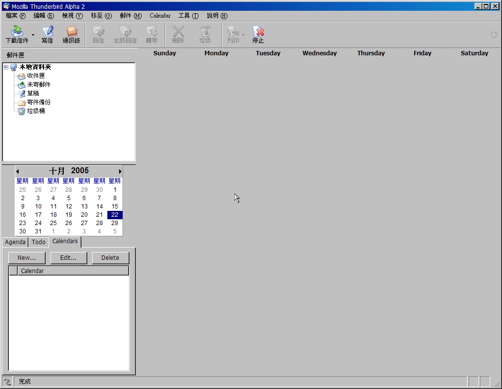 2. 使用 TB 1.0+(20050901)時可以安裝,但是還有問題存在 Lightning02.jpg是安裝後的介面, 圖中右邊的行事曆部份顯示尚有問題