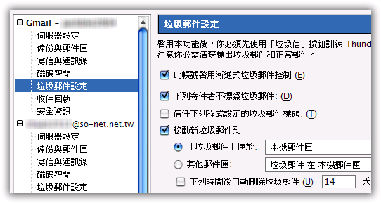 另外,若手動將郵件標示為垃圾郵件,該郵件也會立即自動移到「垃圾郵件」匣中。(這部份須設定「工具 -> 選項 -> 個人隱私」勾選 "當我手動標示垃圾郵件時: 移動到該帳號的「垃圾郵件」匣")