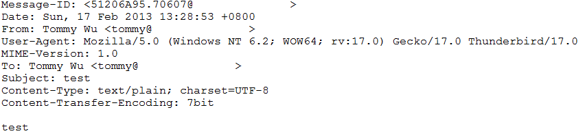 如果是 Thunderbird 寄 Thunderbird 收,是沒有顯示"",