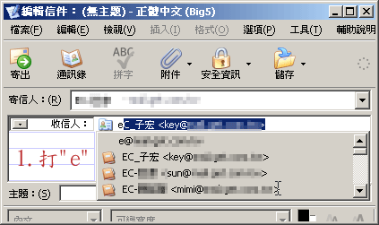 我要寄信給一個叫做eric的人,操作步驟如下: