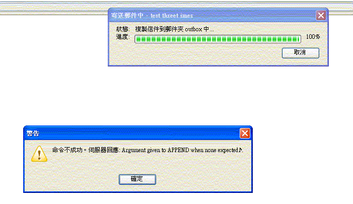 剛剛出現了一個問題. 當我使用 imap 郵箱發信時, 信件正常是會複製到 imap server 一個叫 outbox 的資料夾中的. 我的設定在 TB1.0.2 是沒問題的, 但在 TB1.0.6 就有問題了. 郵件能成功送出, 但係不過複制到 outbox........