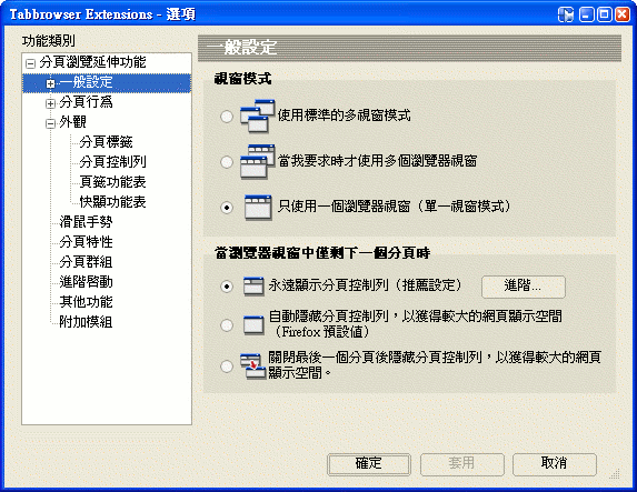 檔案註釋: Tabbrowser Extensions v2.1.2006031301 正體中文化版