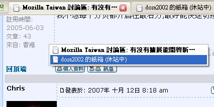 Mozilla/5.0 (Windows; U; Windows NT 5.1; zh-TW; rv:1.8.1.8) Gecko/20071008 Firefox/2.0.0.8