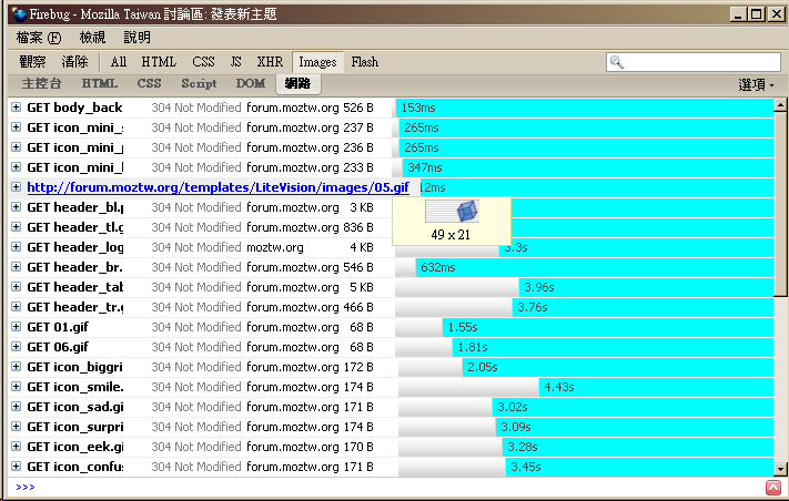 改用 httpfox 即可,這個就是 Firebug 的 network