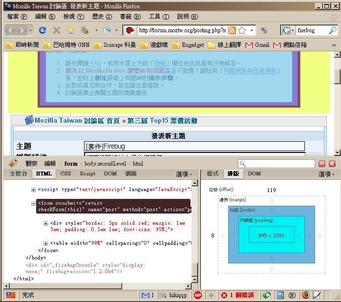 推薦理由:Firebug是Firefox上非常棒的網頁除錯工具,現在他有了中文。對於熟悉的使用者來說Firebug提供了直覺性的操作以及強大的監控中斷功能,此外亦可利用此工具學習他人網頁寫法及CSS樣式或檢測所設計的網頁。