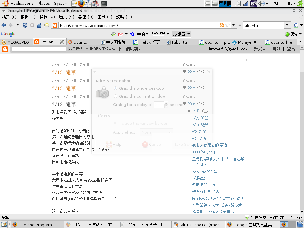Mozilla/5.0 (X11; U; Linux x86_64; zh-TW; rv:1.9.0.1) Gecko/2008071222 Firefox/3.0.1