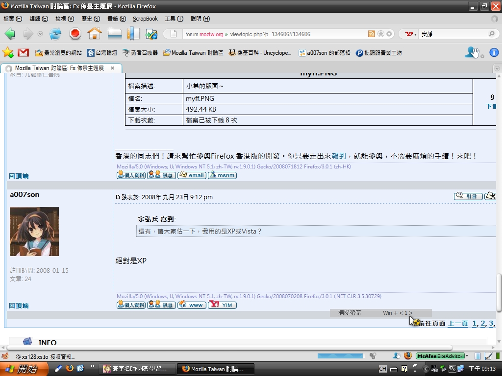 小弟的版面與預設的幾乎沒有分別,只是裝了Vista on XP 和 personas for Firefox。請看!還有,請大家估一下,我用的是XP或Vista?