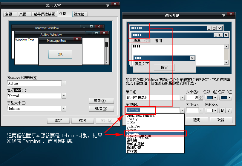 3. 變更其他佈景主題,結果無論是任何主題都無法指定tahoma。
