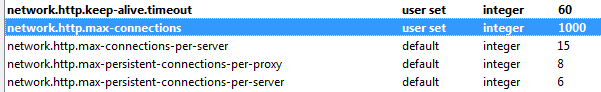 在 Firefox 6 beta 中 network.http.max-connections 預設值變更為 256,