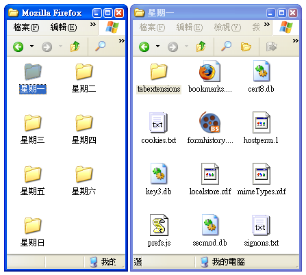 他會在每次關閉 Firefox 的時候,自動將檔案依日別備份(見附圖二),