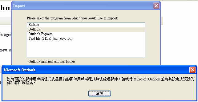 另外還有所謂"outlook 改成預設"為何(因我並無把TB做為預設的郵件軟體,所以我想目前我預設的郵件軟體應還是outlook)?