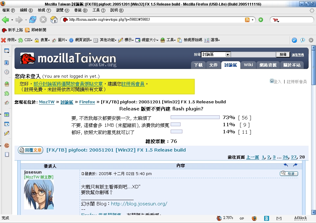 Mozilla/5.0 (Windows; U; Windows NT 5.1; zh-TW; rv:1.8) Gecko/20051111 Firefox/1.5