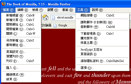 Mozilla/5.0 (Windows; U; Windows NT 5.1; zh-TW; rv:1.8) Gecko/20051111 Firefox/1.5