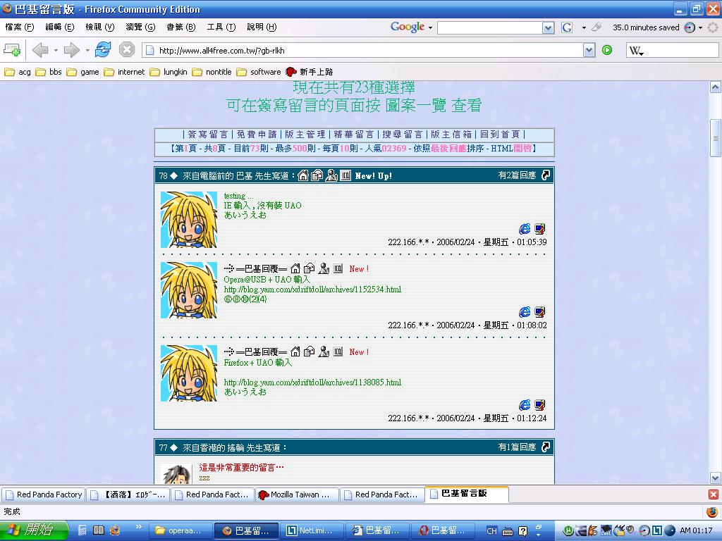 Mozilla/5.0 (Windows; U; Windows NT 5.1; zh-TW; rv:1.8.0.1) Gecko/20060215 Firefox/1.5.0.1
