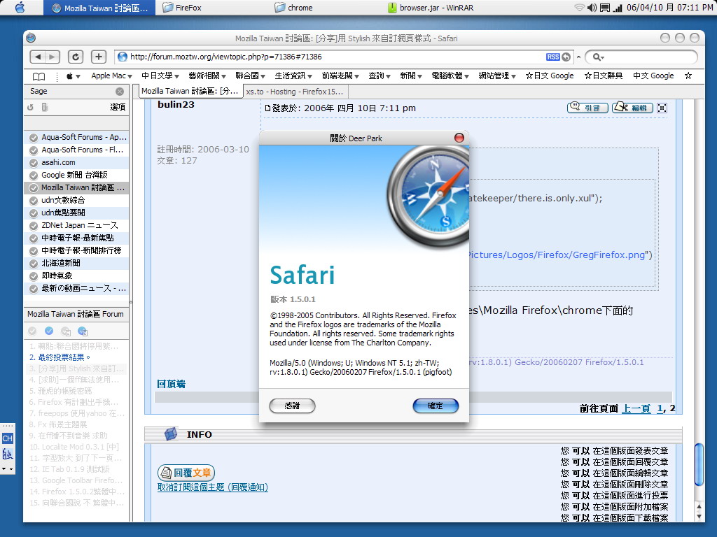 Mozilla/5.0 (Windows; U; Windows NT 5.1; zh-TW; rv:1.8.0.1) Gecko/20060111 Firefox/1.5.0.1