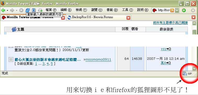 今天上學校網站發現,本來可以用來切換firefox或ie的小狐狸icon不見了!