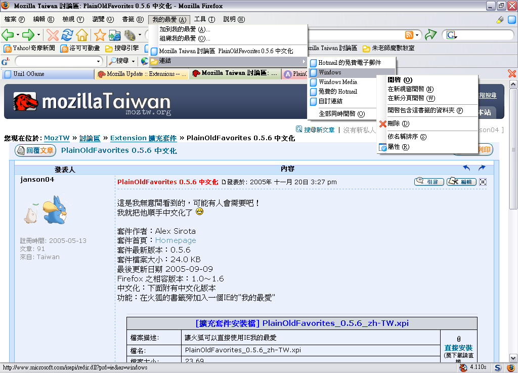 Mozilla/5.0 (Windows; U; Windows NT 5.1; zh-TW; rv:1.8) Gecko/20051117 Firefox/1.5