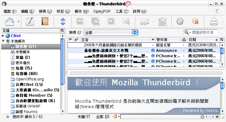 *下載Thunderbird 1.5.0.5中文化套件包適用於 Windows
