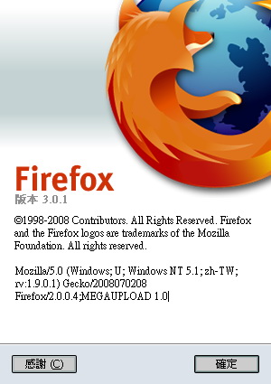 Mozilla/5.0 (Windows; U; Windows NT 5.1; zh-TW; rv:1.9.0.1) Gecko/2008070208 Firefox/2.0.0.4;MEGAUPLOAD 1.0