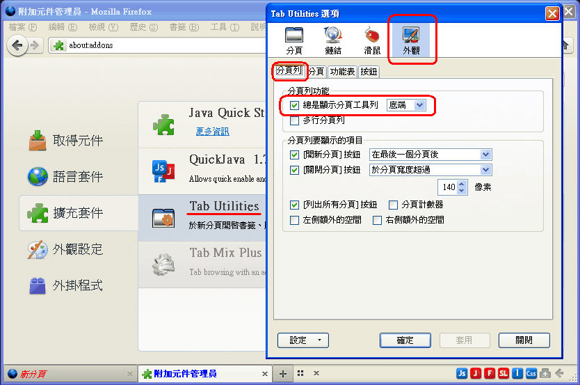 • 方法一: 安裝 Tab Mix Plus (TMP)