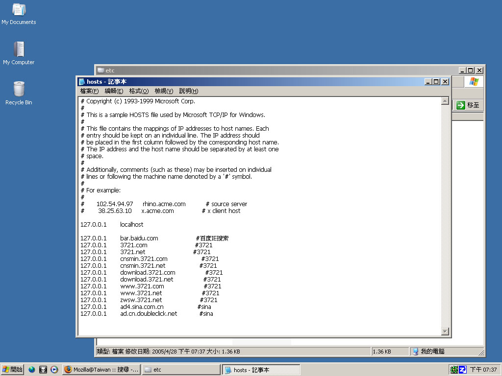 Mozilla/5.0 (Windows; U; Windows NT 5.1; zh-TW; rv:1.7.7) Gecko/20050414 Firefox/1.0.3